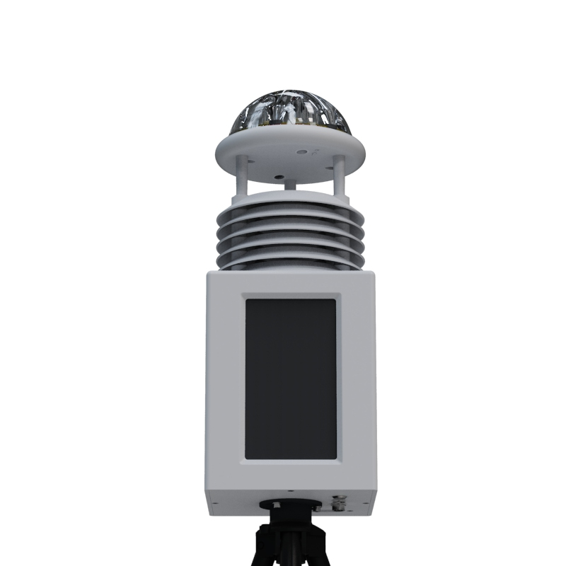 3、風速、風向、空氣溫度、濕度、大氣壓力、總輻射/光照、光學雨量七要素一體式傳感器